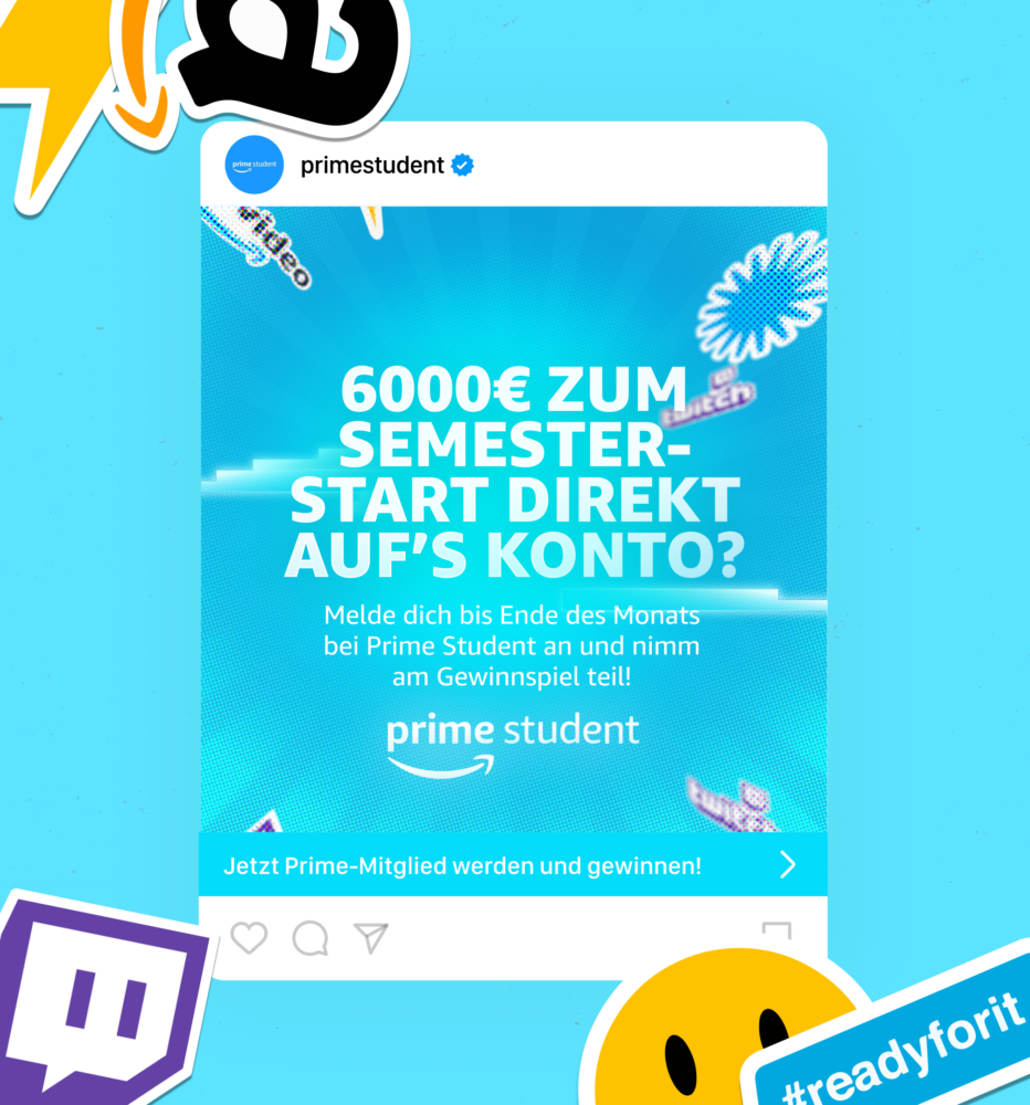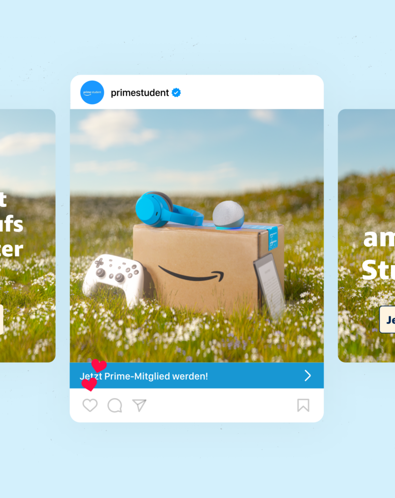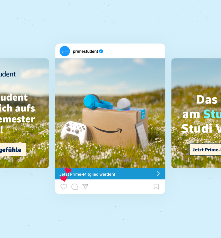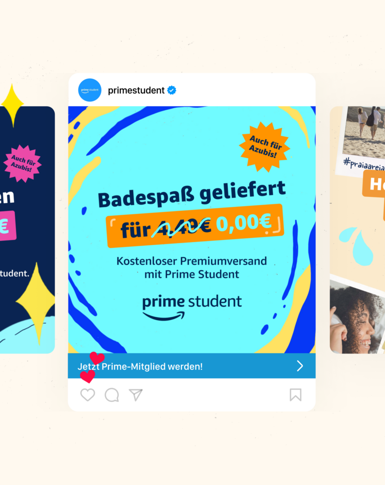 During the transition from on-campus to digital marketing and the expansion to seven European markets over multiple years now, MBRS has created a vibrant and playful visual language for Prime Student on social media and has been taking care of the paid social and campaign production.